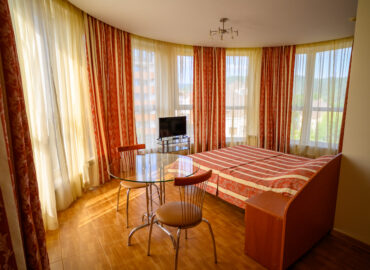 Этот выдающийся однокомнатный номер категории «Комфорт» — воплощение элегантности и функциональности. 36 квадратных метров изысканно организованного пространства с романтическим французским балконом и видом на живописный сад создают атмосферу европейского шика в курортной обстановке.